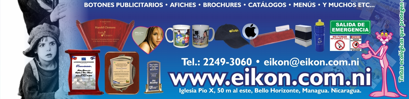 Eikon de Nicaragua, con más de 25 años de experiencia en la industria gráfica. Sus mejores proyectos de comunicación puede confiarlos a nosotros.